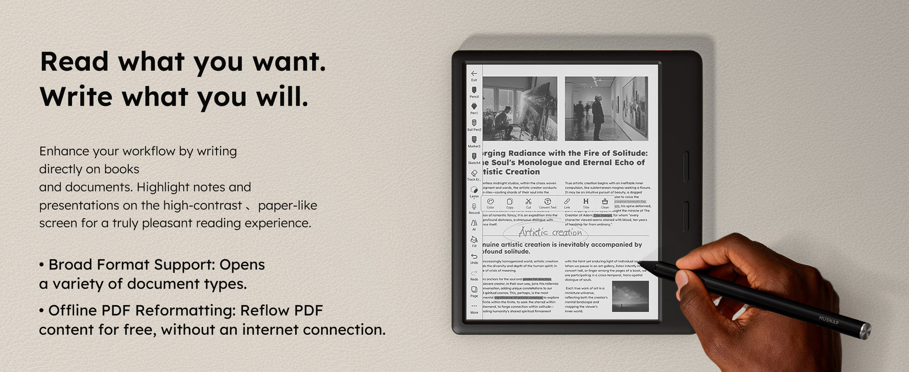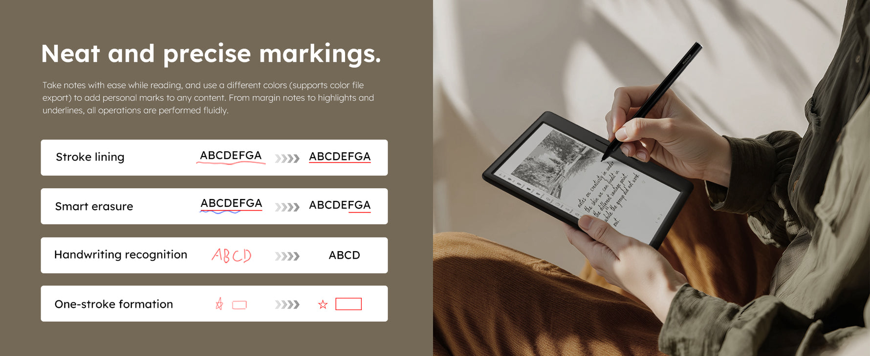 Musnap Ocean 64GB+4GB 7”eBook Reader Supports Handwriting, 7”E-ink Paper Tablet with Long Battery Life for Reading and Writing