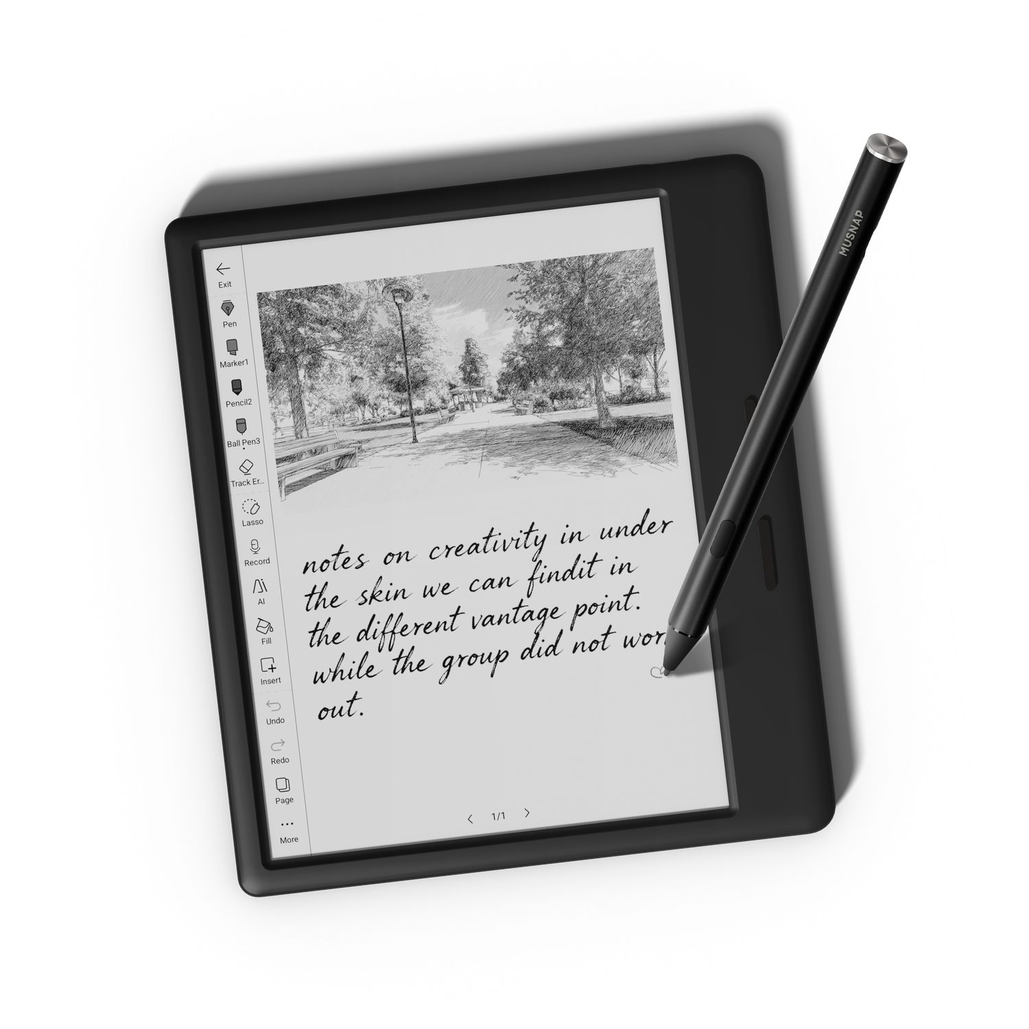 Musanp Notebook: Your all-in-one space for ideas. Capture every thought—from notes and plans to sudden inspiration—with powerful tools like audio recording and handwriting-to-text. Thanks to smart organization and virtually unlimited space, everything stays perfectly organized and easy to find.