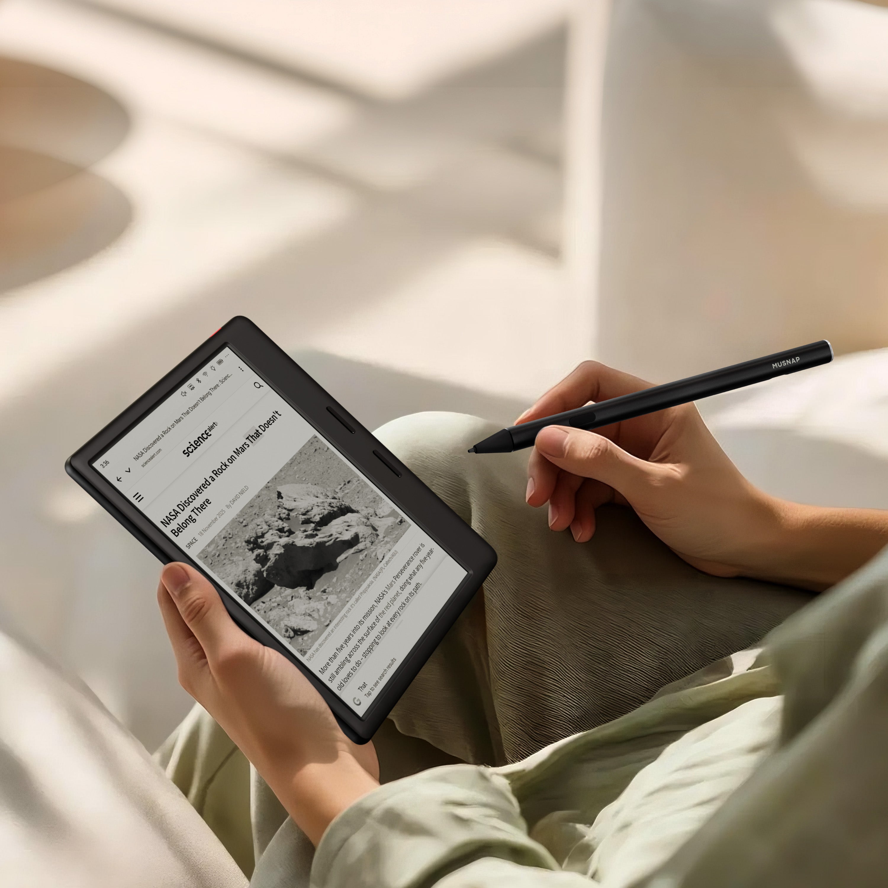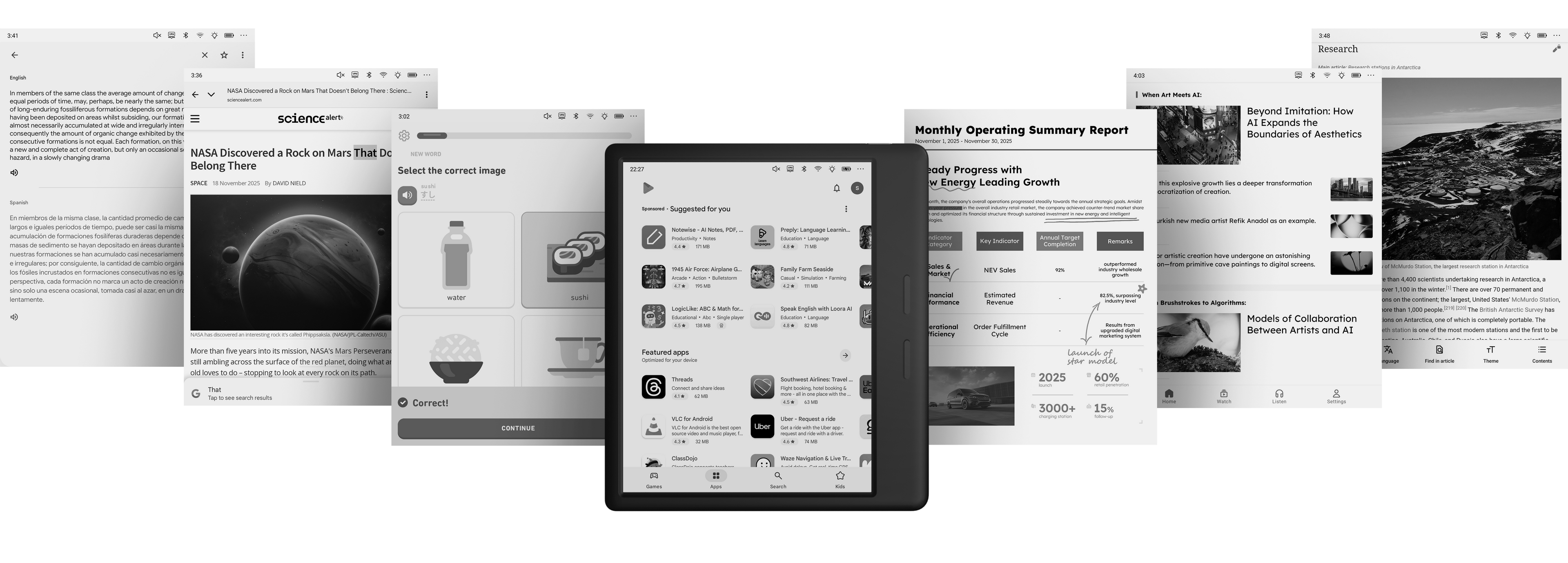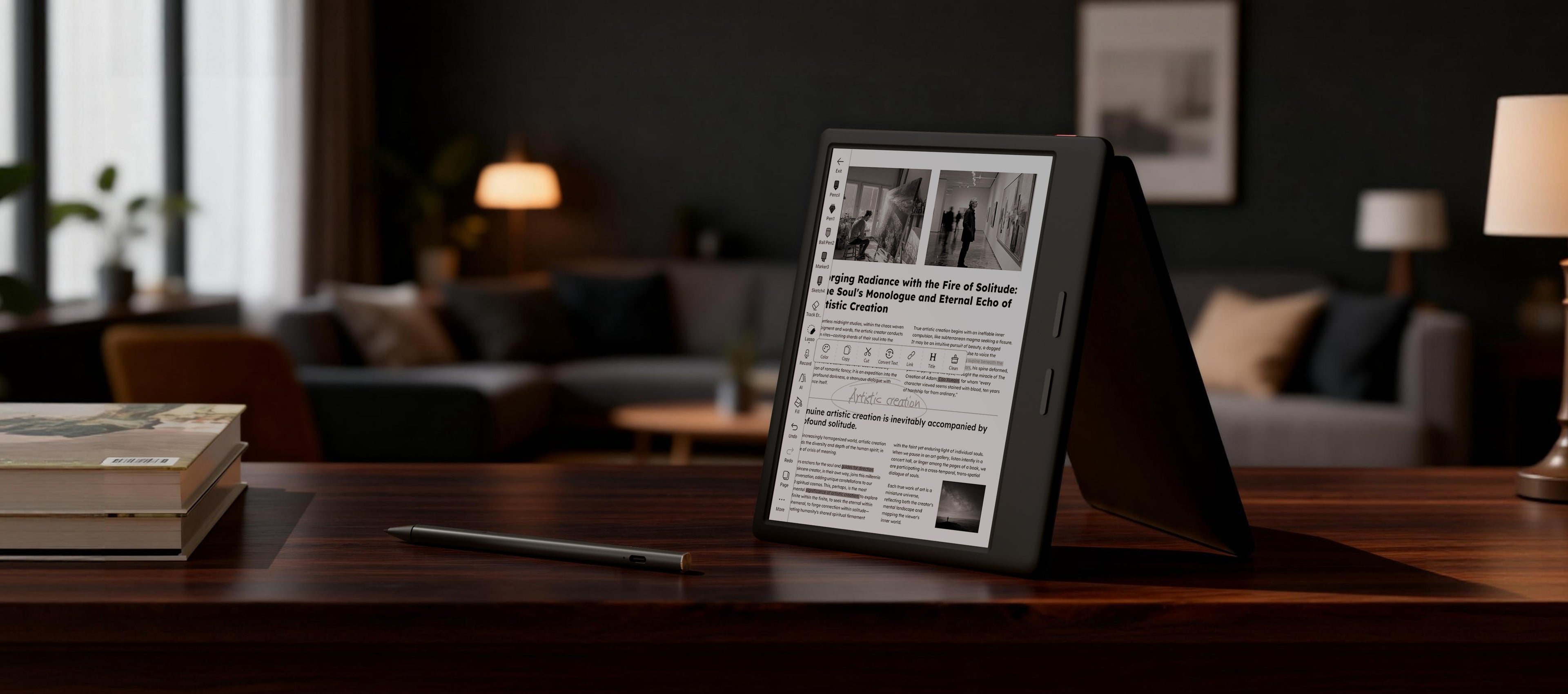 Enhance your workflow by writing directly on books and documents. Highlight notes and presentations on the high-contrast 、 paper-like screen for a truly pleasant reading experience.