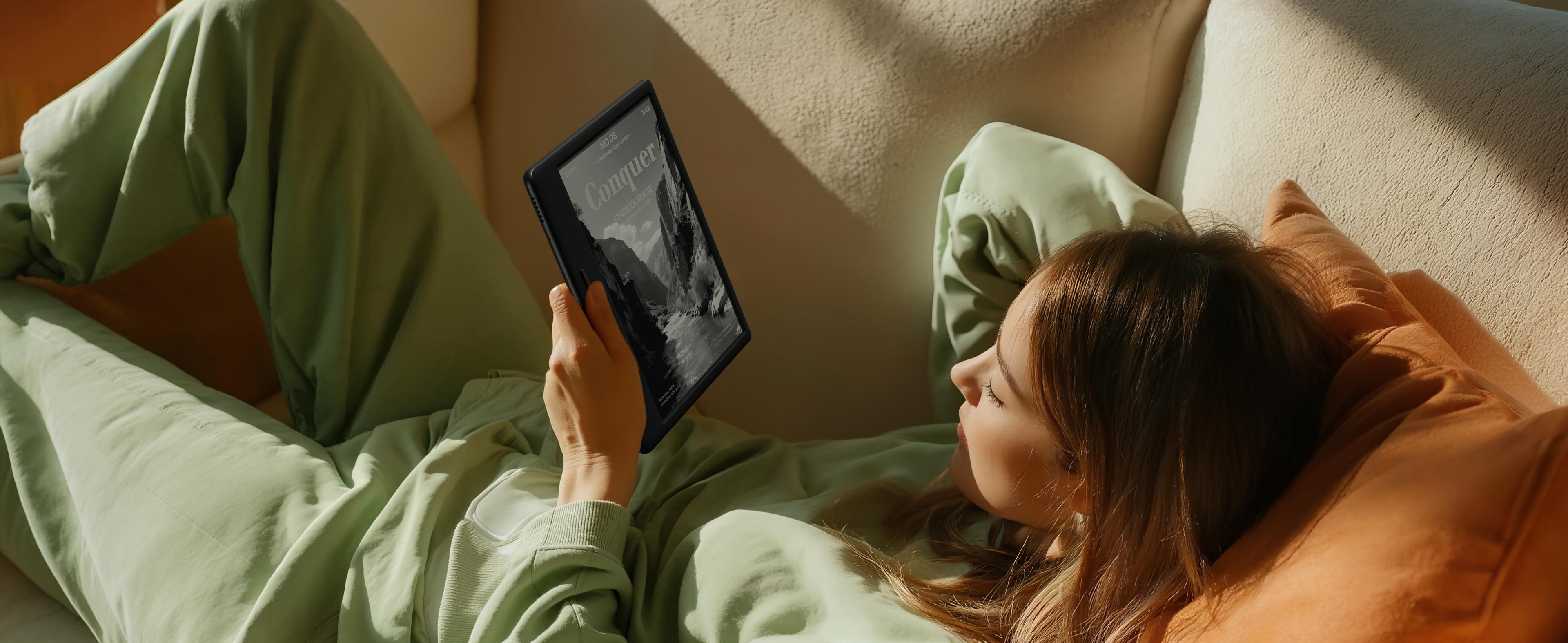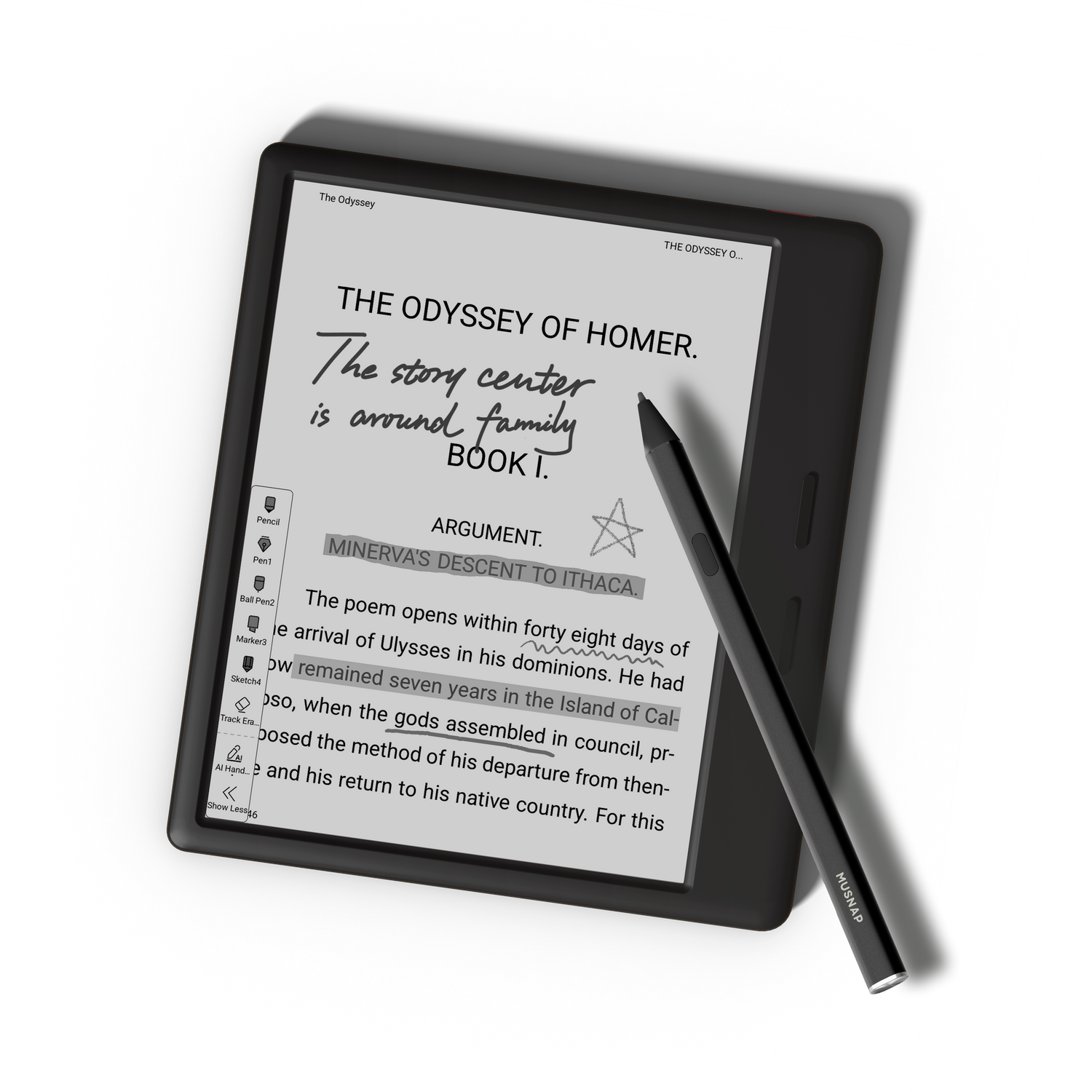 The crisp ,high-contrast 7” glare-free display for your reading and writing.