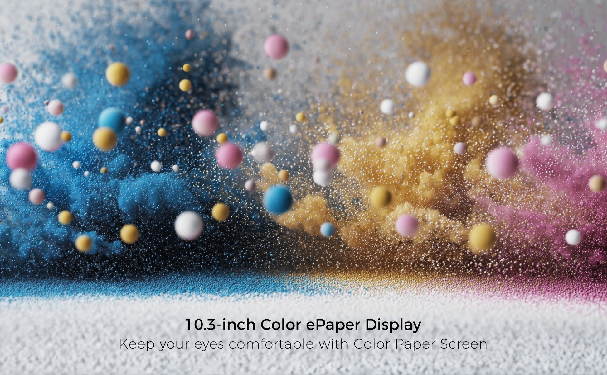 10.3" Color Display: 10.3" Kaleido 3 (4,096 colors) ,2480x1860 resolution with 300 PPI for sharp text and 150 PPI color support, paired with adjustable warm/cool backlight for comfortable day/night reading.